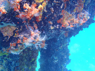 really pretty coral growing on a broken pier, and even a star fish. I swam down
